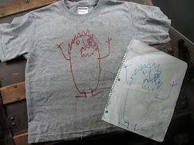 A couple Christmases back, I took an original Beckett drawing and screen printed it onto t- shirts. These shirts are still pretty popular 'round these parts, but B's drawing style has become so incredibly expressive - such character and imagination - that for Tall, Dark and Husbandy's birthday I figured it was time for a B sketch tee redux.
